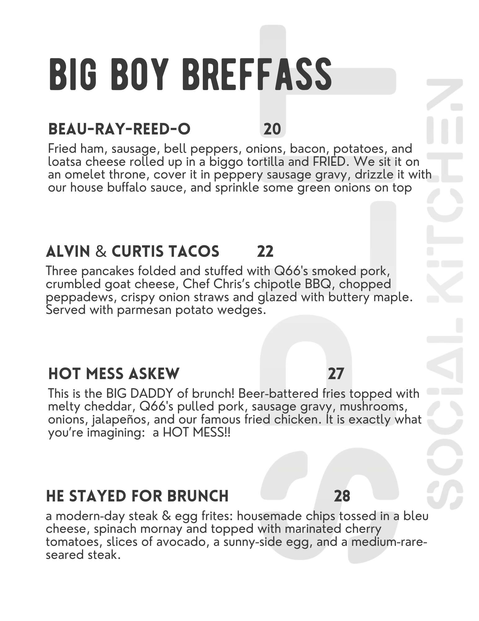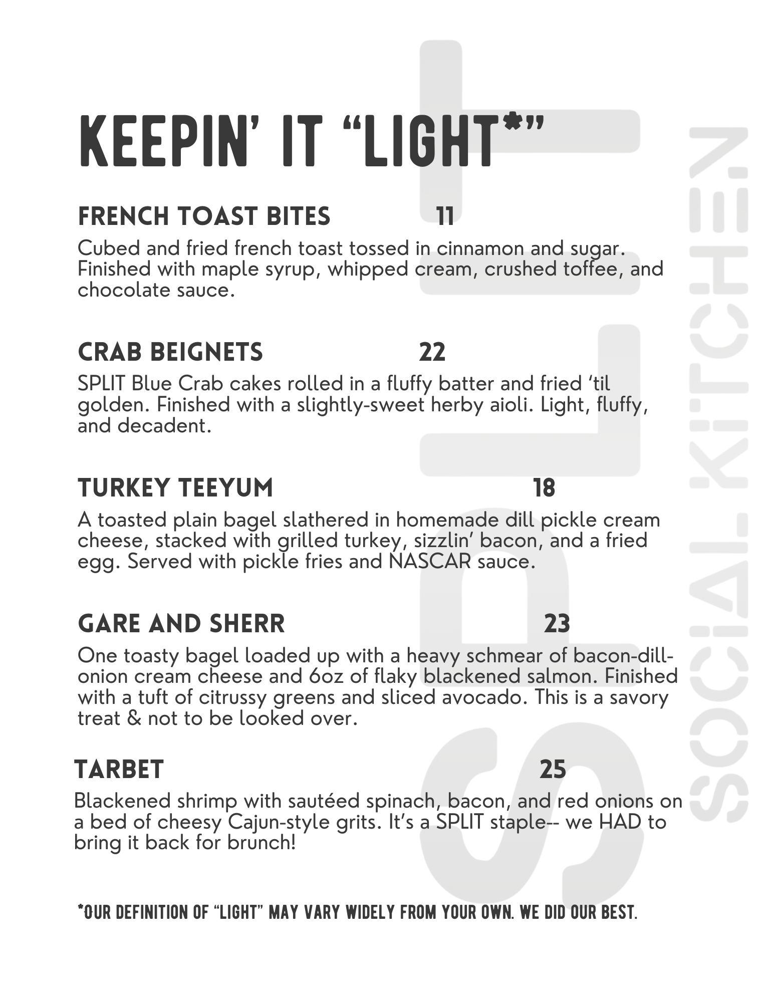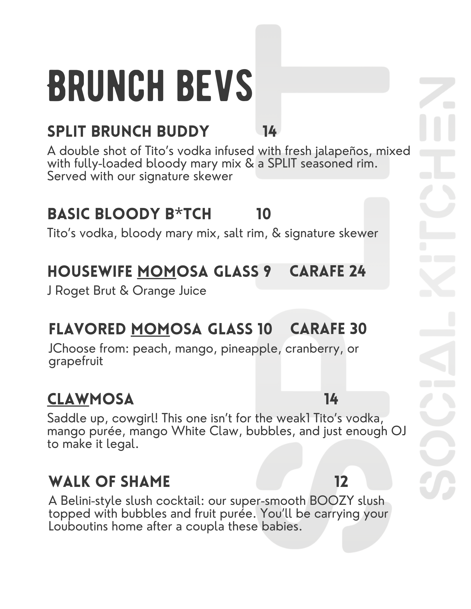 SPLIT Brunch Menu